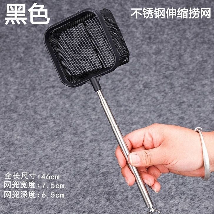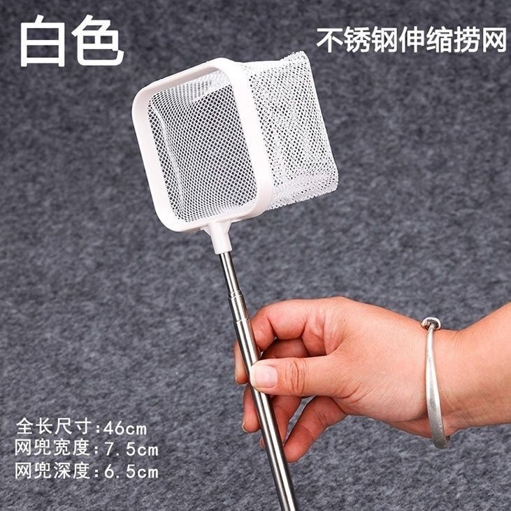 不锈钢可伸缩捞鱼网鱼抄3D虾捞鱼缸用抄网鱼捞隔离伸缩杆方形吸盘