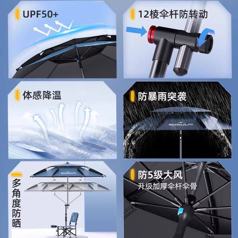天天豪钓鱼伞双层透气户外专用露营遮阳伞加厚防晒防暴雨专用钓伞