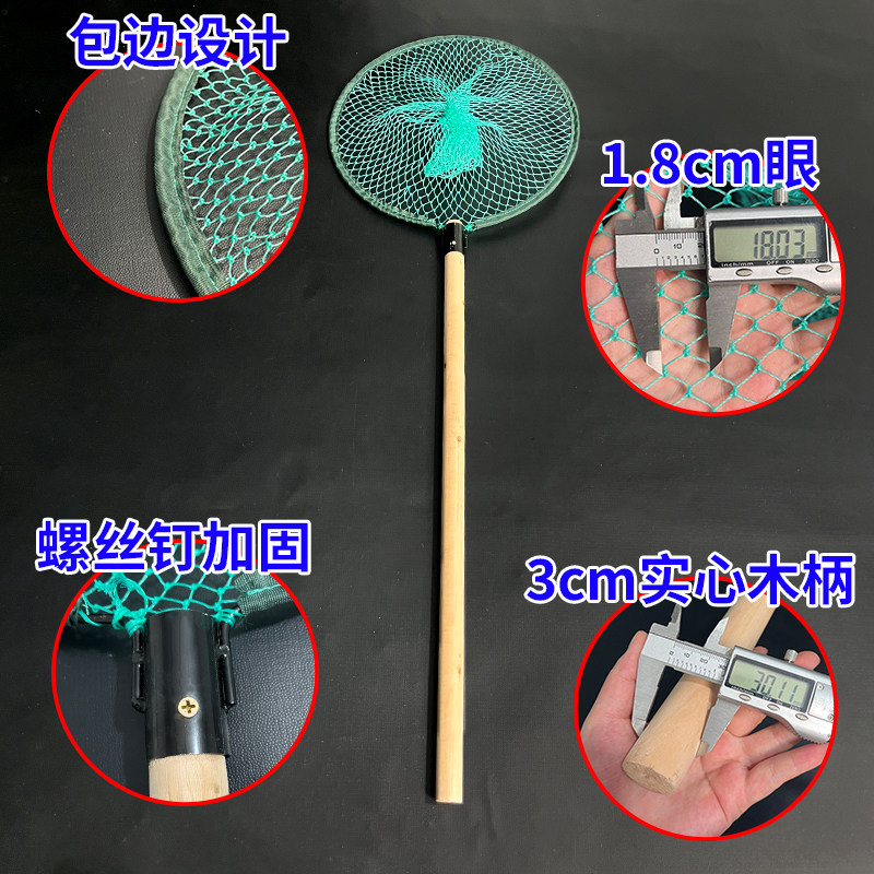 淘加粗实心木柄抄网头浅网12股结实捞鱼抄网海鲜餐馆超市卖鱼捞鱼网