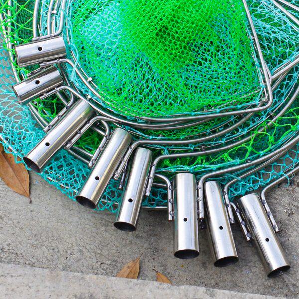 不锈钢平头方形双圈抄网头捞鱼网兜,专为鱼塘、市场及户外捕鱼设计,采用优质不锈钢材质,耐腐蚀、强度高,使用寿命长。其平头方形结构便于贴近水底或容器边缘,轻松捞取活鱼,减少逃脱几率。双圈加固设计提升整体稳定性,连接处牢固不易变形。搭配高强度网兜,网眼均匀,透水性好,既能有效兜鱼又避免损伤鱼体,特别适合活鱼交易、水产养殖及休闲垂钓使用。轻便易操作,可快速安装于任意标准手柄,是渔具市场、水产摊贩及养鱼户的实用之选,高效便捷,广受用户好评。