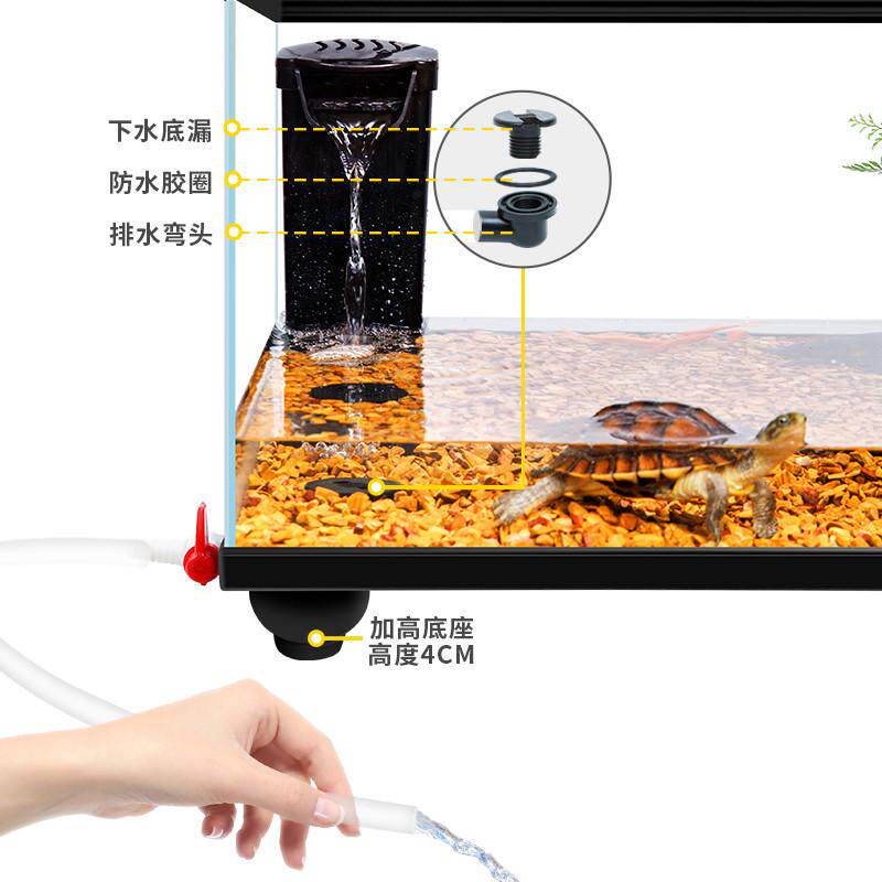 淘宝带盖乌龟缸大型家用超白玻璃底部排水防逃逸养龟专用生态玻璃鱼缸