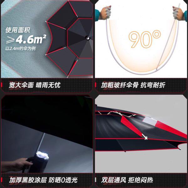 2.4米大钓鱼伞加厚防雨遮阳伞万向鱼雨伞双层防晒钓伞R地插抗弯i.