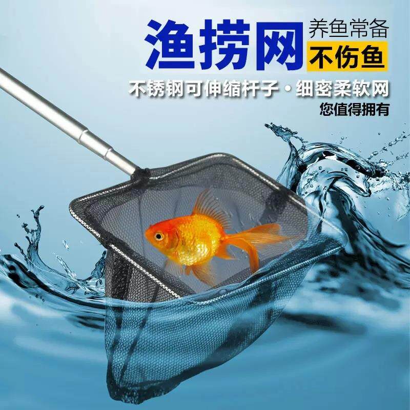鱼捞不锈钢鱼网渔网方形鱼缸网兜金鱼伸缩观赏鱼手抄水族箱渔捞