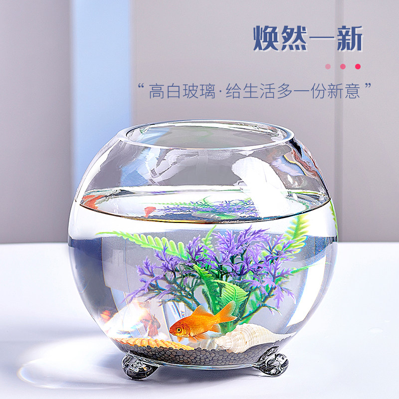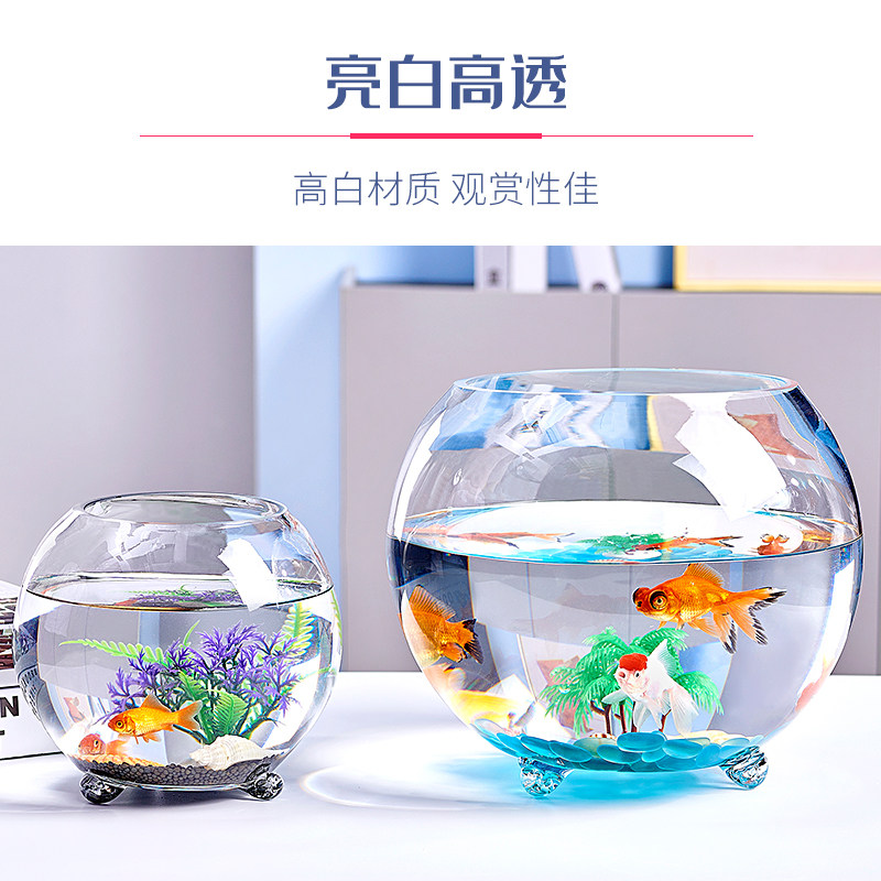 金鱼缸圆形透明玻璃大号乌龟缸加厚办公室鱼缸客厅招财创意生态缸