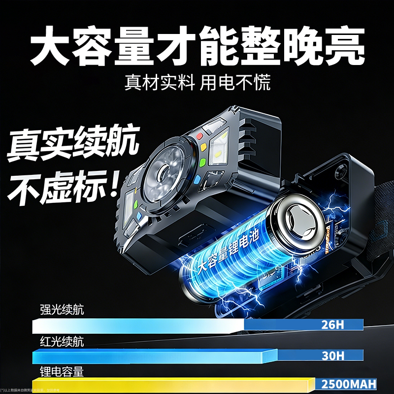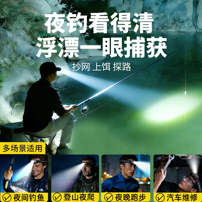 天夜钓头戴式头灯2025新款强光超亮超长续航100小时钓鱼专用手电筒