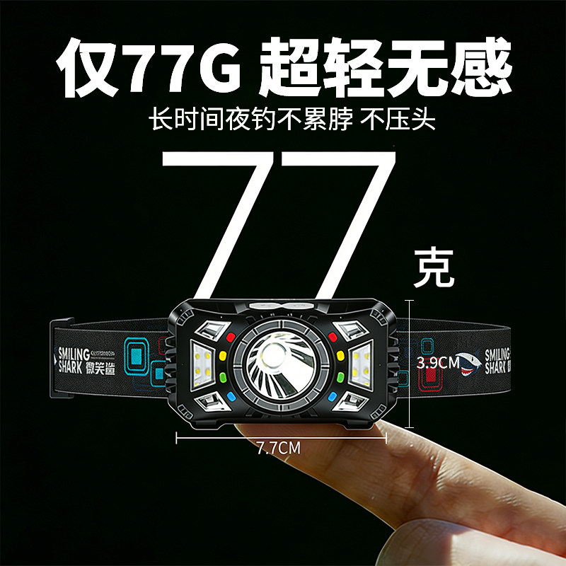 天猫微笑鲨2026新款头灯钓鱼专用强光充电超亮头戴式超长续航夜钓登山