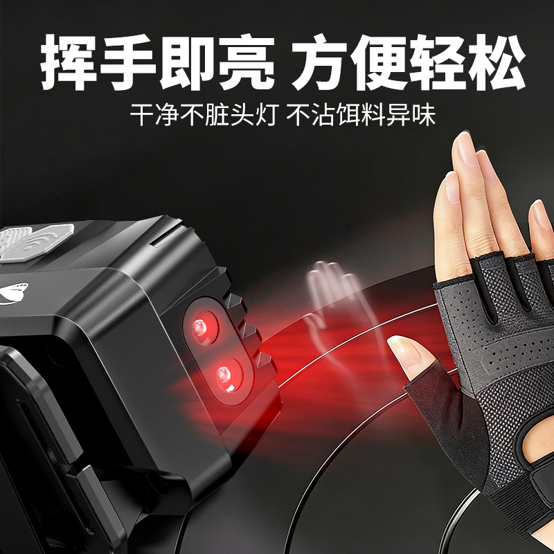淘便携式自动感应头灯强光充电超亮头戴式夜钓鱼照明户外超长续航