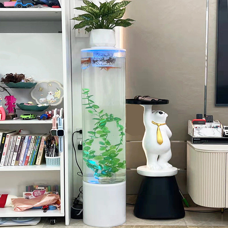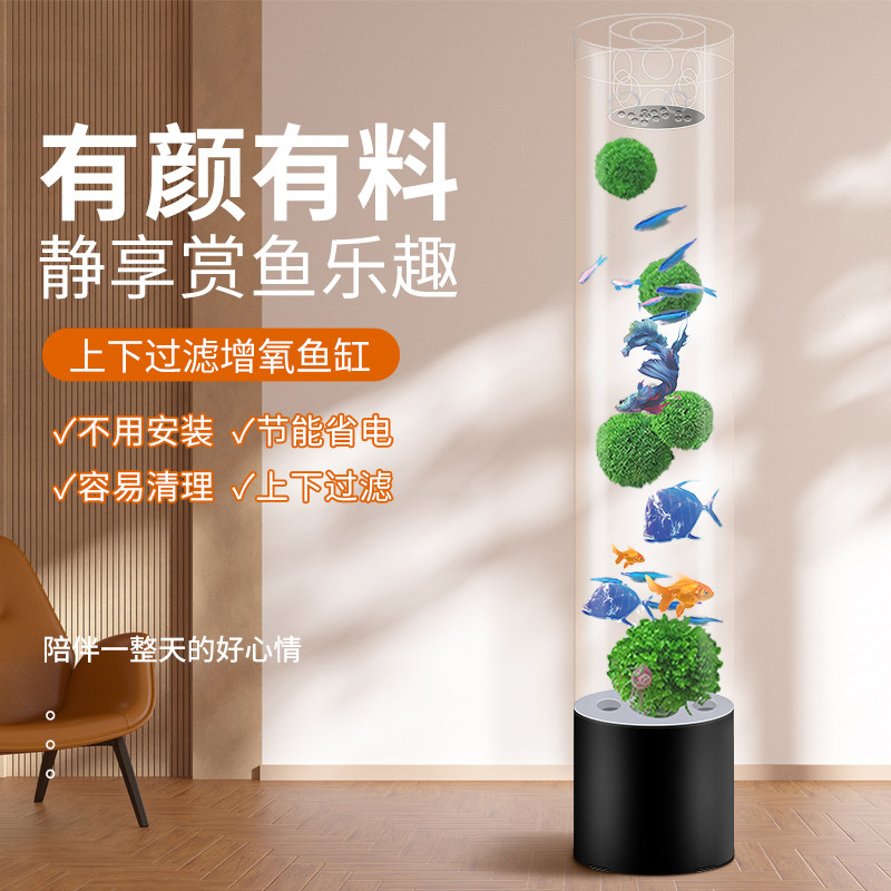 淘宝免安装无管过滤增氧落地鱼缸 圆柱形亚克力水族箱电视柜客厅鱼缸