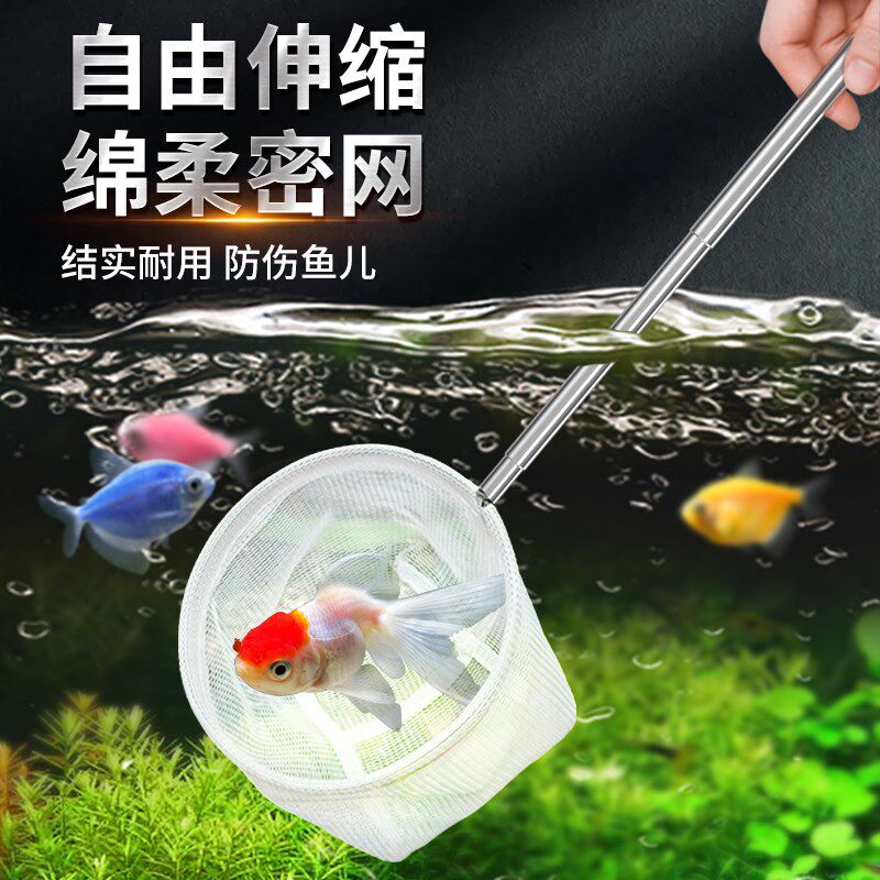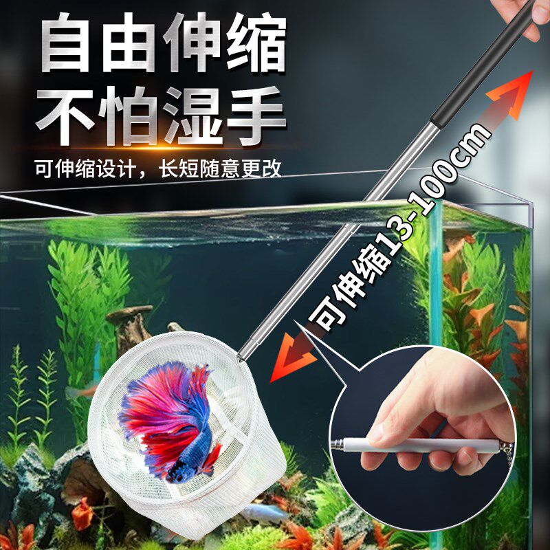 淘可伸缩鱼捞孔雀鱼斗鱼斑马鱼捞网小鱼捞水族箱不锈钢鱼虾抄网渔捞