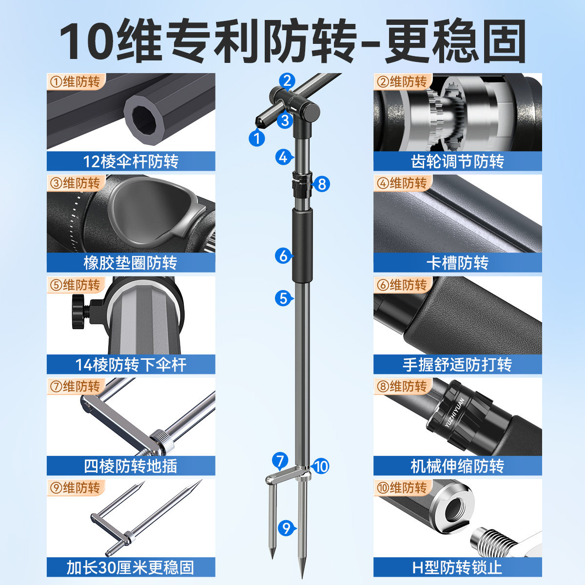 高端拐杖伞下杆钓鱼伞万向连接器手杖钓伞拐杖头伞杆伞架配件渔具
