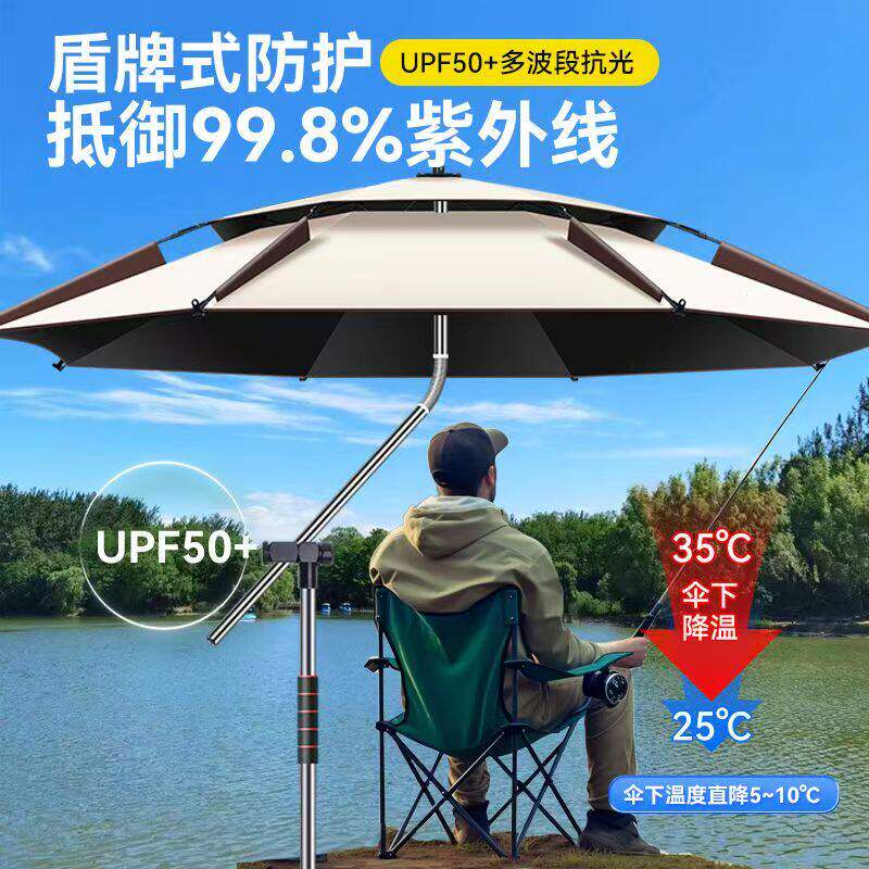淘钓鱼专用伞加厚涂层高档双层防风野钓垂钓伞摆摊伞钓鱼伞防晒防雨