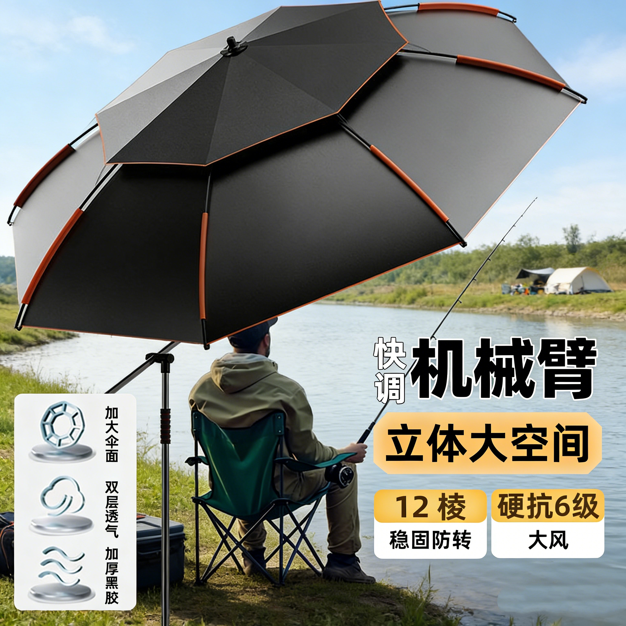 淘2026新款钓鱼伞大钓伞户外露营遮阳伞垂钓机械拐杖加厚防晒防暴雨
