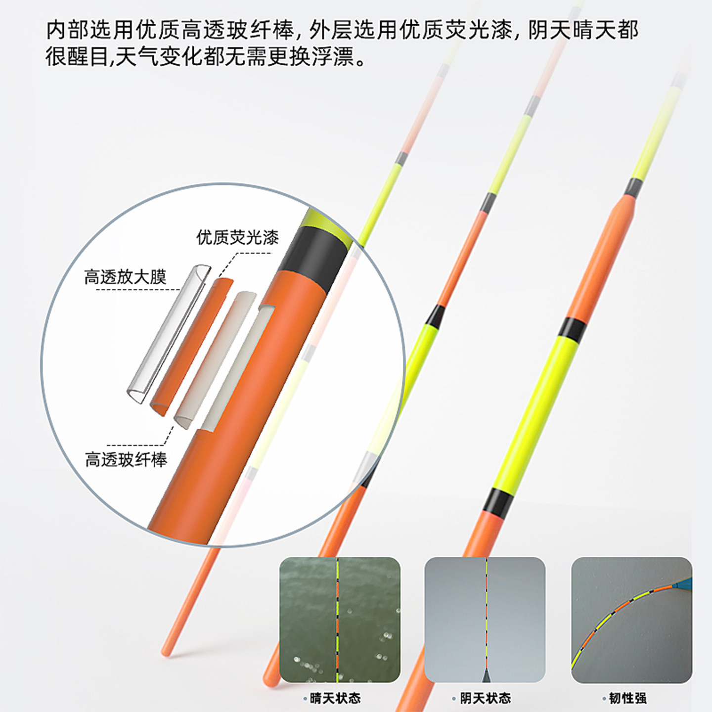枣核型浮漂明孚正品醒目高灵敏抗走水鲫鱼漂60cm加长行程截口鱼漂