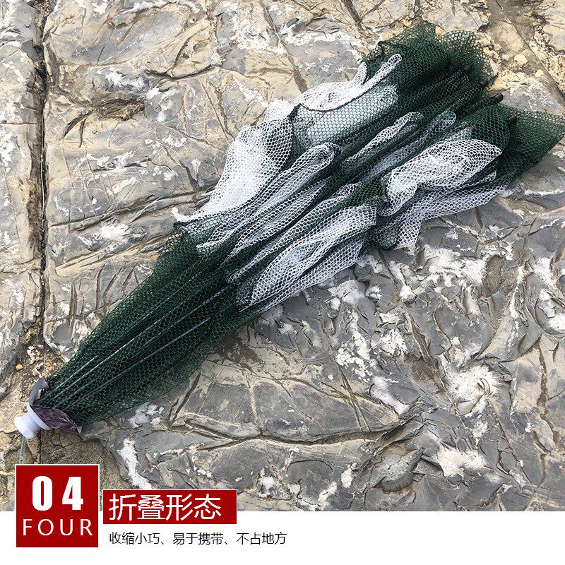 淘6嘴加粗不锈钢白色折叠捕鱼笼 抓虾笼虾网圆形捕鱼网渔网龙虾笼