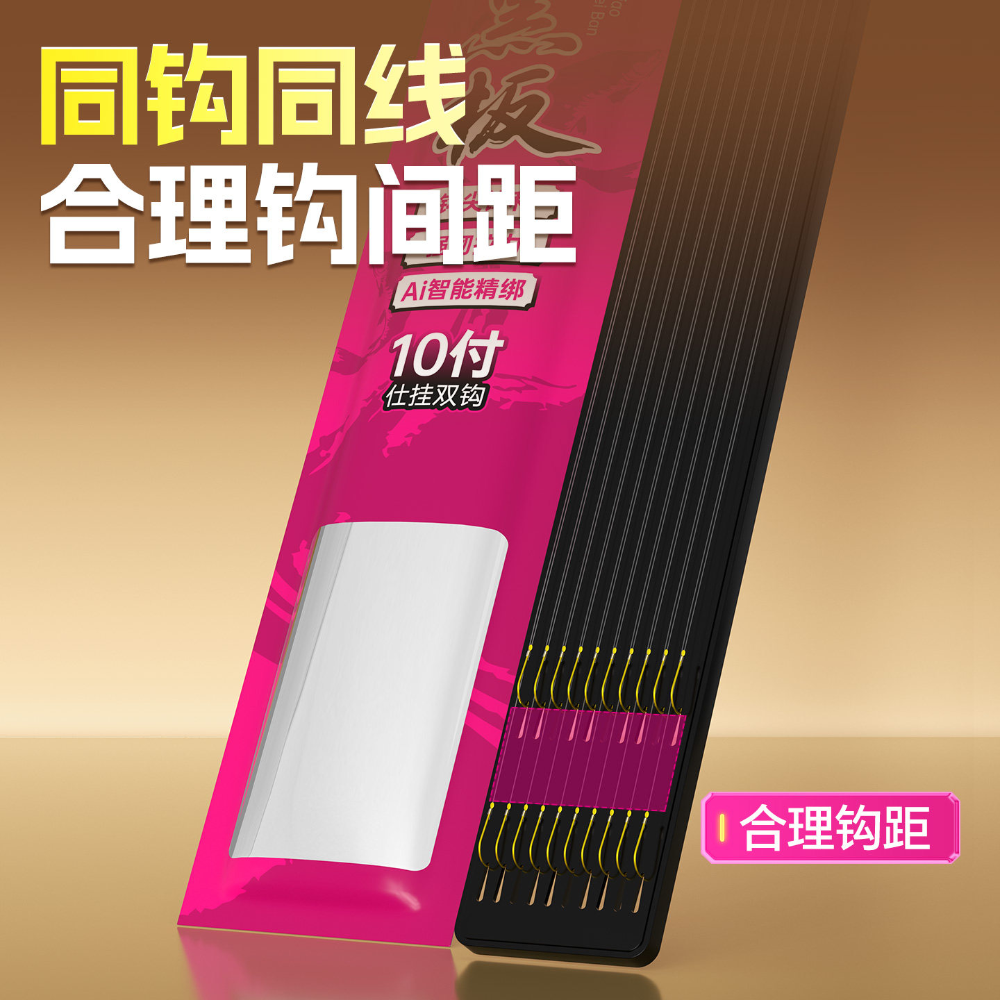 小凤仙小黑板子线成品双钩,采用优质高碳钢丝精工制作,搭配金袖、金海夕、伊势尼等多种经典鱼钩型号,钩尖锋利、穿透力强,抗拉耐磨,持久耐用。子线经过特殊处理,柔韧性好,结节强度高,有效减少断线跑鱼现象。双钩设计提升中鱼率,适用于鲫鱼、鲤鱼、罗非等多种淡水鱼种。产品为正品保障,工艺精细,绑钩标准,即拆即用,极大节省钓友准备时间。无论是休闲野钓还是竞技作钓,小凤仙小黑板子线双钩都是值得信赖的优质选择,助您轻松享受垂钓乐趣。