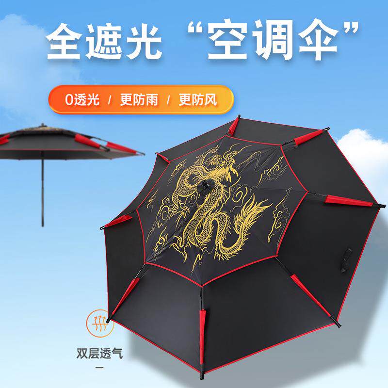 民间艺人全遮光拐杖钓鱼伞万向大钓伞加厚雨伞隔热双层防晒遮阳伞