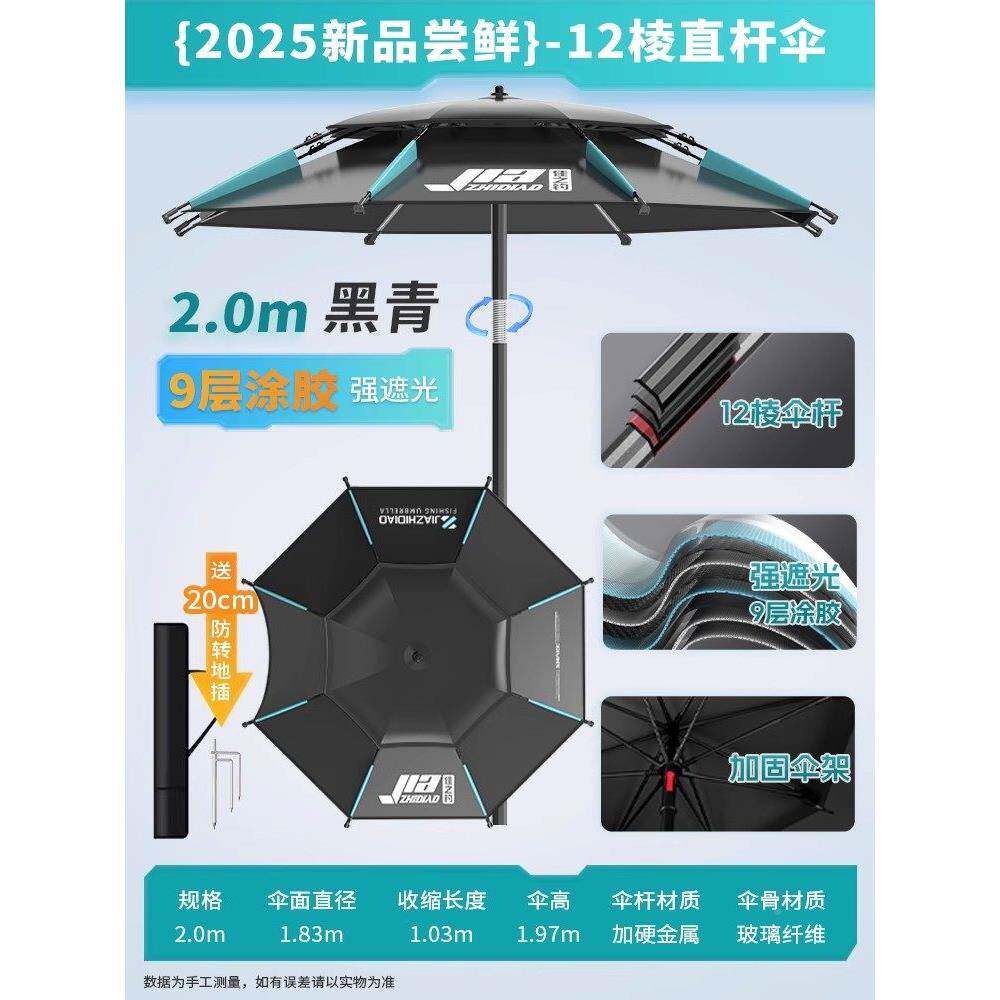 淘宝伞2025新款万钓鱼伞2向节拐杖钓鱼调伞垂钓雨防伞加厚黑胶晒钓折