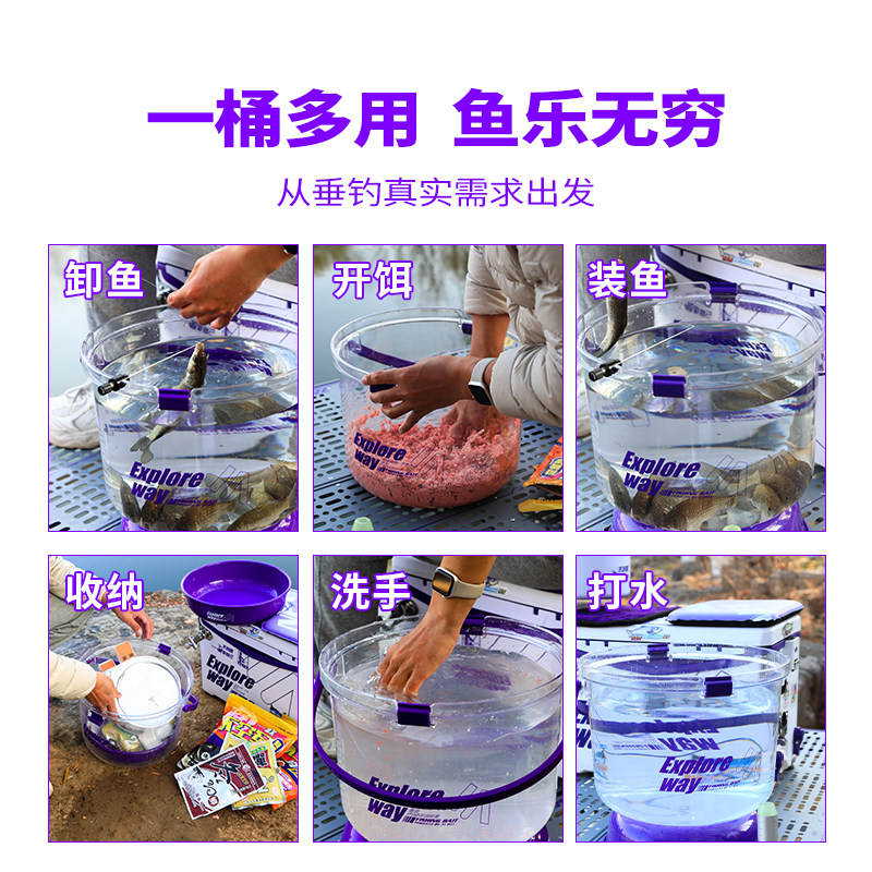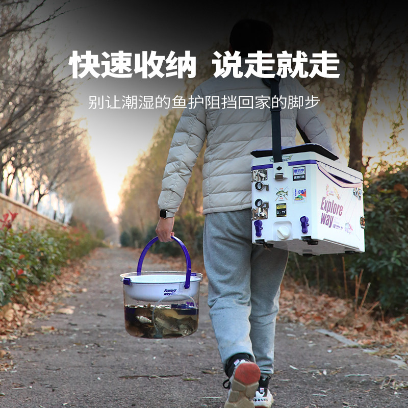 打水桶钓鱼路亚野钓可折叠手提鱼护装鱼桶多功能户外鱼箱手提鱼桶