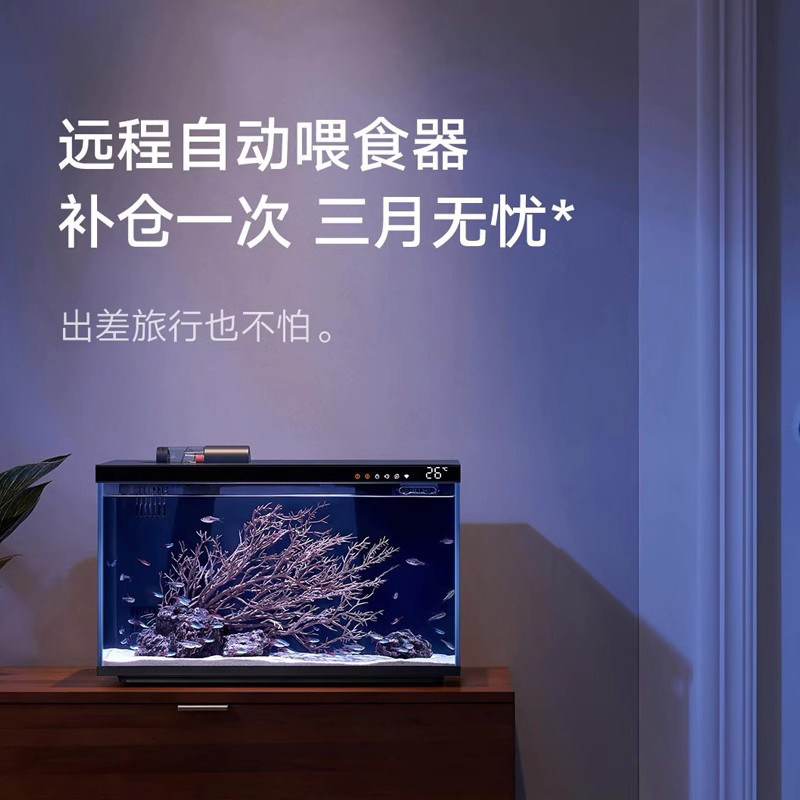 小米米家智能鱼缸是一款专为小型空间设计的桌面生态造景设备,适用于客厅、办公室等场景。集过滤、增氧、照明于一体,内置高效静音水泵与多层过滤系统,有效保持水质清澈,减少换水频率。搭配智能APP远程控制,可定时调节灯光模式、查看水质状态,支持多种氛围灯效,营造自然生态氛围。缸体采用高透光玻璃,搭配简约现代设计,内置沉木、水草等造景元素,打造微型水景生态。小巧不占地,操作简单,适合新手与忙碌人群,让都市生活增添一抹绿意与宁静,是提升空间格调与生活品质的贴心之选。
