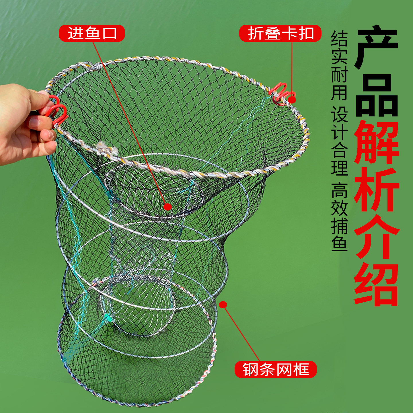 花篮鱼笼鱼网鲫鱼捕鱼户外抓黑鱼捕捉鱼神器特大只进不出加粗骨架