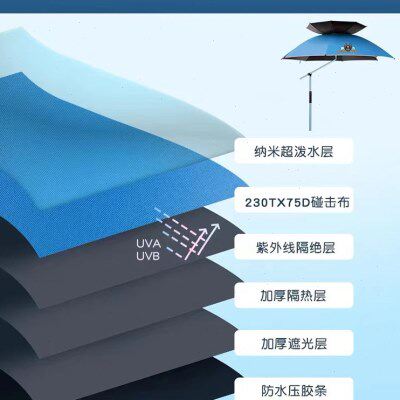 2023年新款户外智能钓鱼伞,集防雨、防晒、通风于一体,专为垂钓爱好者设计。采用2.4米超大伞面,360°万向调节支架,可自由调节角度与高度,轻松应对不同风向与日照。伞面选用高密度防紫外线涂层,UPF50+强效防晒,同时具备防水涂层,雨天垂钓无忧。顶部创新设计智能天窗,兼顾通风与观察浮漂,避免闷热。双弯臂结构增强稳定性,抗风性能优异。轻便耐用,安装简易,是户外垂钓的理想伴侣,让您全天候享受舒适垂钓体验。