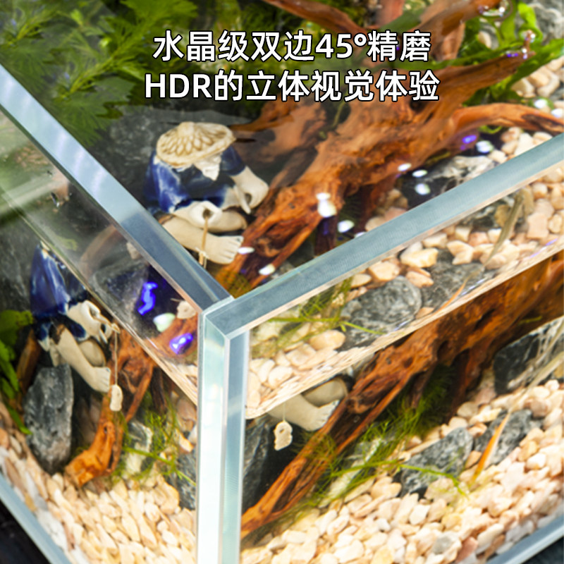 鱼缸桌面背滤小型自循环静音免换水懒人轻奢超白玻璃造景小水族箱