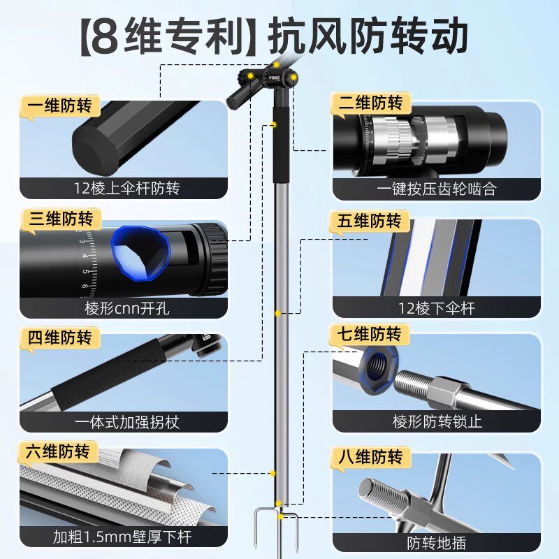 渔之源钓伞钓鱼伞2026新款户外野钓雨伞加大遮阳防风拐杖伞露营伞