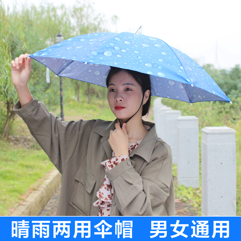 淘伞帽头戴式雨伞便携钓鱼斗笠伞双层防晒折叠头顶雨伞帽户外遮阳伞