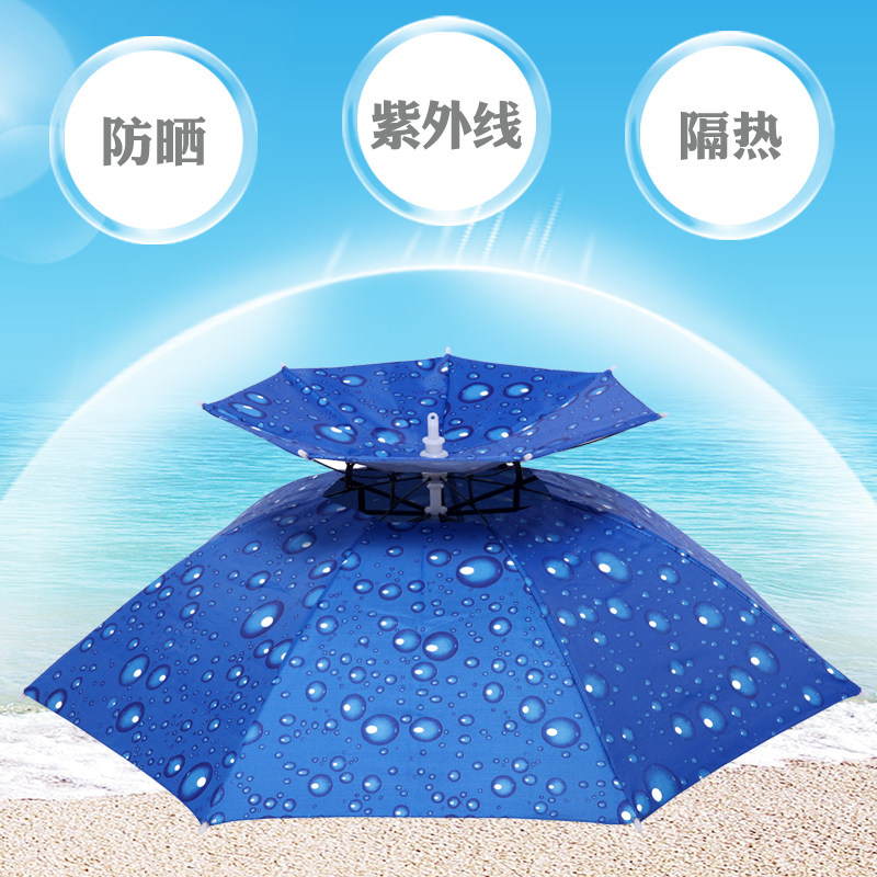 伞帽头戴式雨伞便携钓鱼斗笠伞双层防晒折叠头顶雨伞帽户外遮阳伞