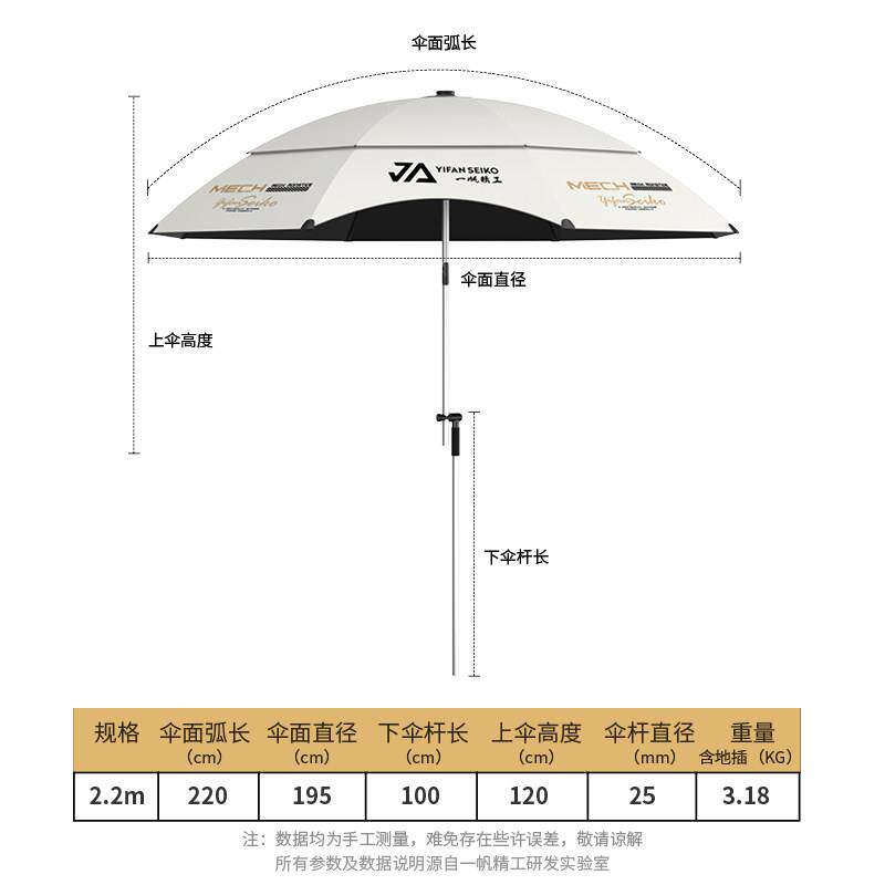 淘宝一帆精工新款2.4米钓鱼遮阳伞拐杖双弯机械臂多向调节防雨钓伞
