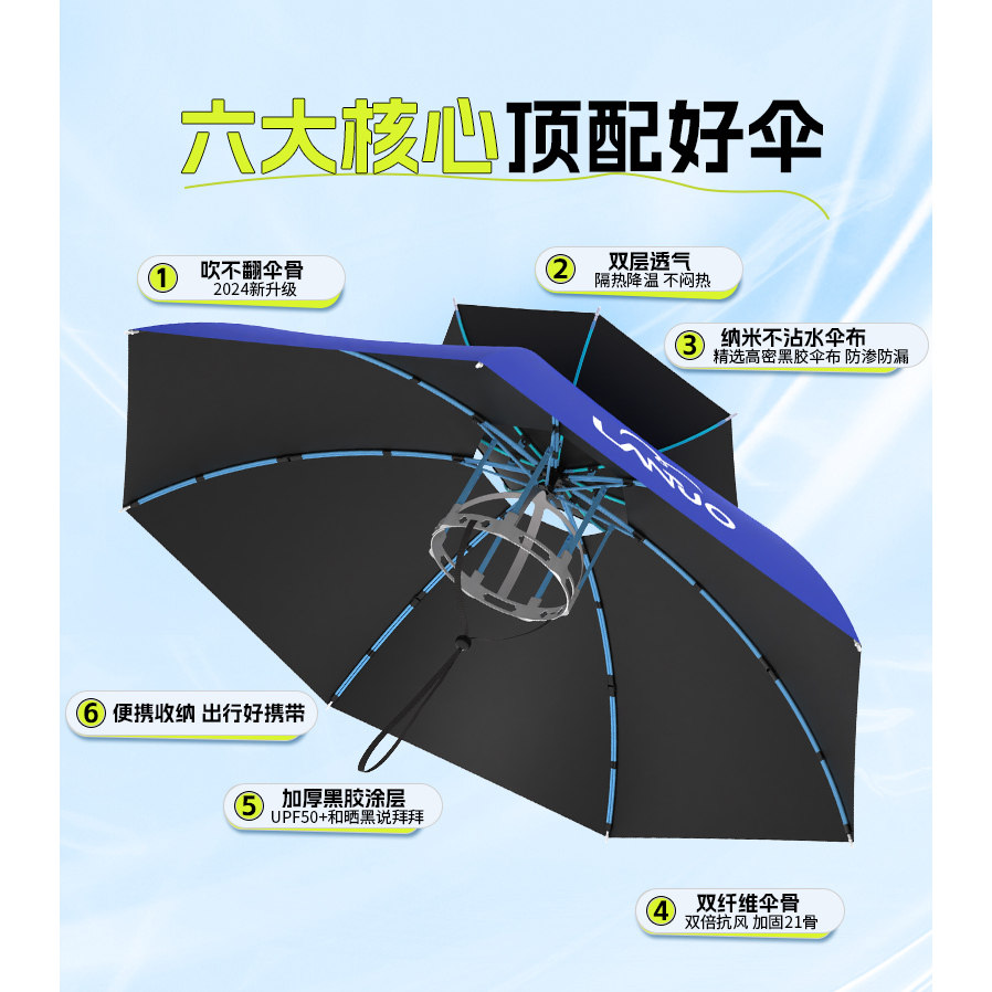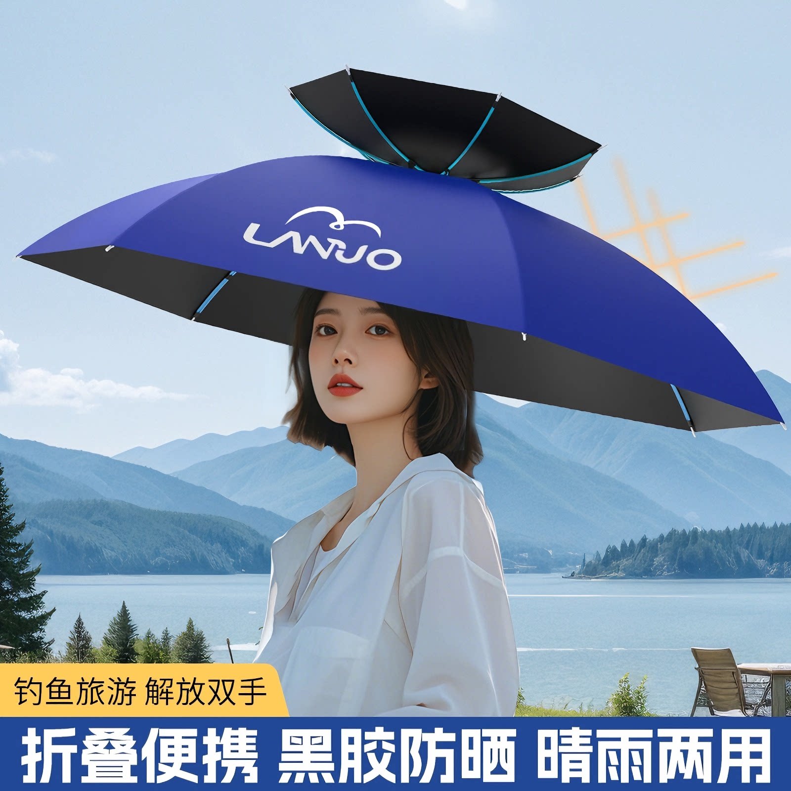 2025新款钓鱼伞帽双层大号户外遮阳防晒头戴式雨伞斗笠折叠头顶伞