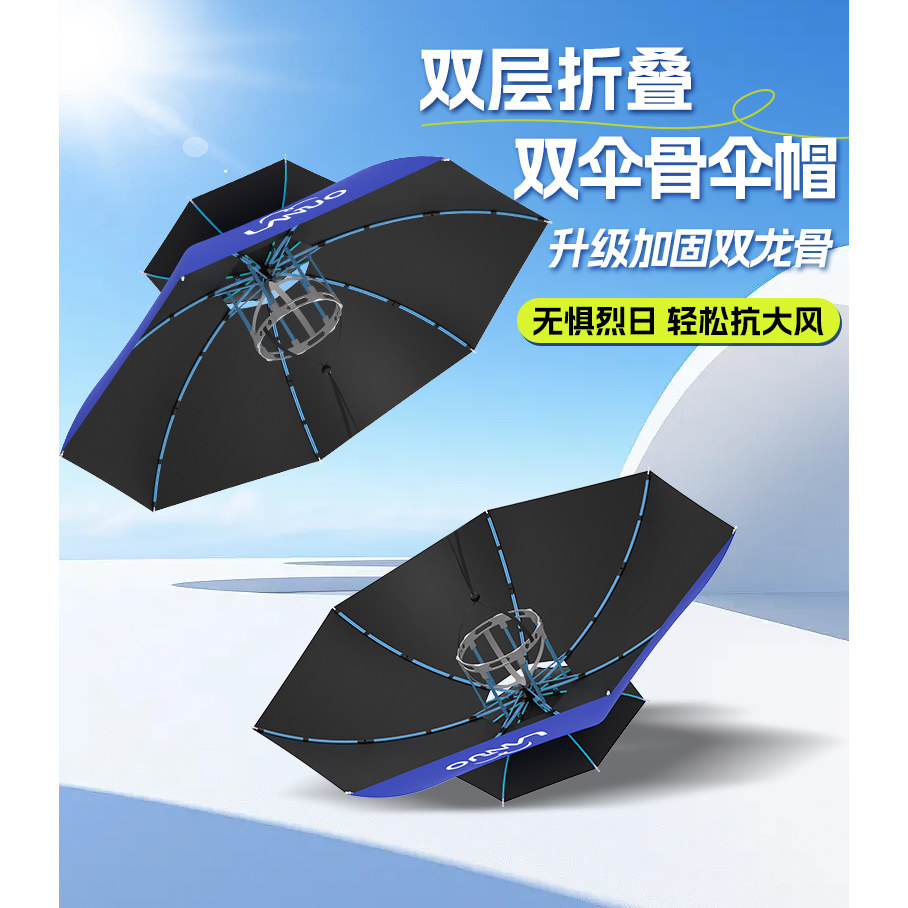 淘头戴式伞帽户外钓鱼遮阳伞双层大号可折叠野钓专用便携式头顶伞