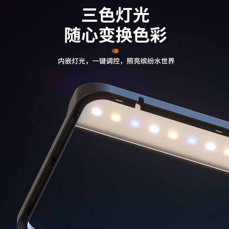 2026年新款桌面生态造景金鱼水族箱,专为小型客厅设计,集过滤、制氧、照明于一体,打造简约智能的居家水族体验。采用静音水泵与高效生物过滤系统,有效净化水质,持续供氧,保障金鱼健康生长。透明高硼硅玻璃缸体,搭配LED柔光照明,清晰展现水草、沉木与砂石构成的微型生态景观,营造自然静谧氛围。小巧精致,占地仅A4纸大小,适合书桌、茶几或电视柜摆放,既是宠物栖息地,也是家居艺术点缀。智能触控面板支持定时换水提醒与灯光模式调节,操作便捷。让都市生活融入一抹灵动生机,尽享养鱼乐趣。