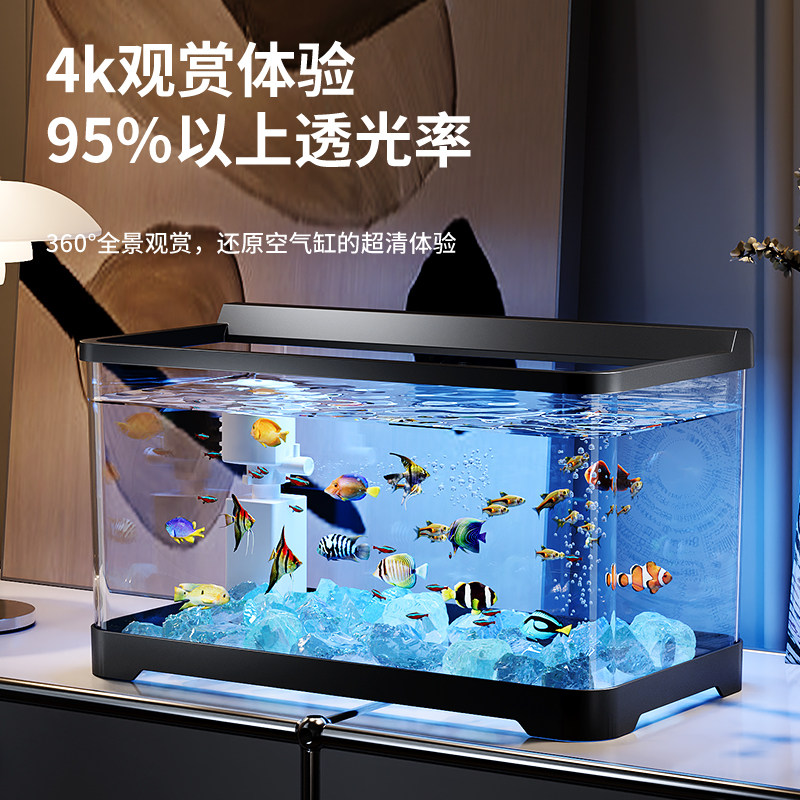天鱼缸桌面背滤小型自循环静音免换水懒人轻奢超白玻璃造景小水族箱