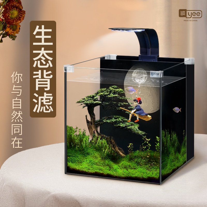 淘宝yee背滤鱼缸一体式超白玻璃缸造景全套家用客厅桌面小型生态龟缸