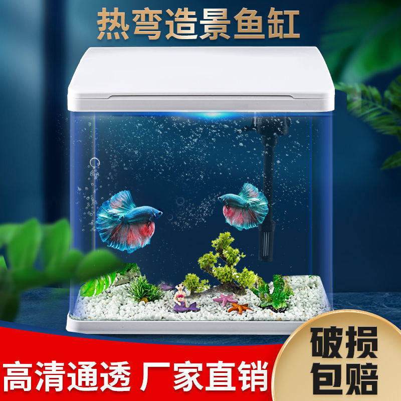 淘暗黑鱼缸小型客厅水晶桌面专用造景家用斗鱼鱼缸自循环恒温玻璃缸