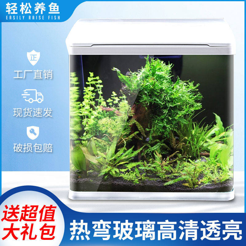鱼缸新款生态玻璃超白缸家用客厅办公室小型大桌面养金鱼底部排水