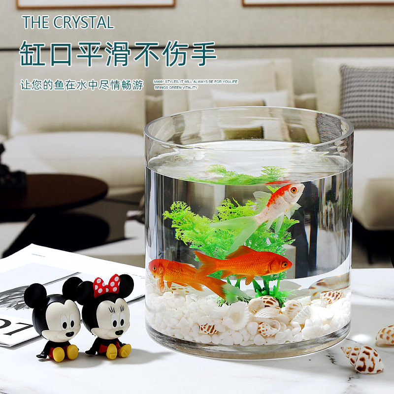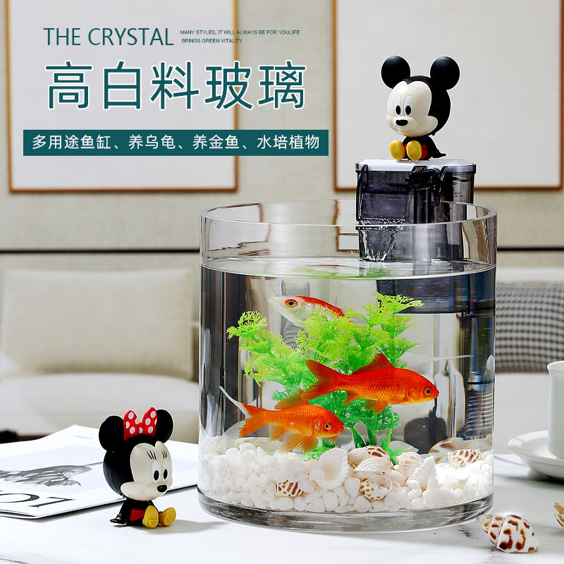 淘宝创意加厚超白圆柱形玻璃小型鱼缸办公室客厅桌面懒人免换水水族箱
