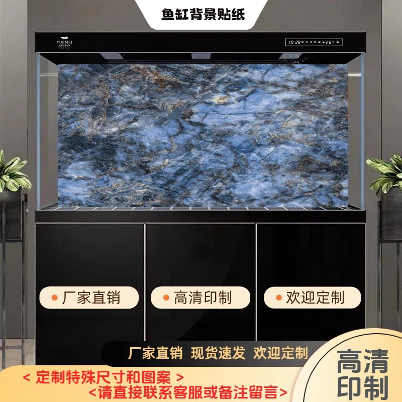 淘宝鱼缸背景贴纸冰花翡翠绿仿大理石纹冰丝蓝玉水族箱鱼缸造景正面胶