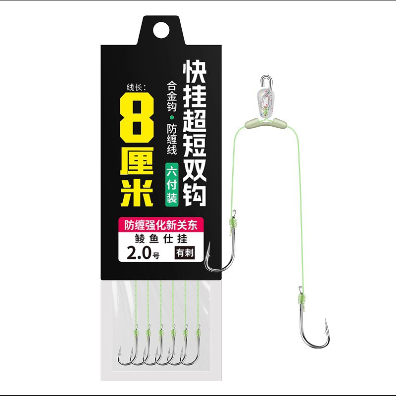 快挂超短子线双钩8厘米防缠绕鲮鱼梅州钓法野钓新关东跑铅钓鱼钩,专为野钓鲮鱼设计,采用8厘米超短子线搭配双钩结构,有效减少挂底与缠绕,提升作钓效率。结合梅州钓法精髓,搭配新关东钩型,钩尖锋利、强度出众,配合跑铅钓组,增强信号灵敏度与稳定性,尤其适合复杂水情。快挂设计便于更换子线,节省时间。整体配置兼顾隐蔽性与操控性,在自然水域作钓鲮鱼、罗非等底层鱼种时表现优异,是野钓爱好者提升渔获的实用利器。