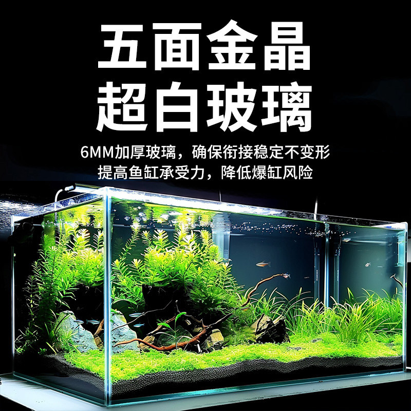 天猫鱼缸超白金晶五线超白鱼缸家用大型水草缸客厅溪流缸小型生态龟缸
