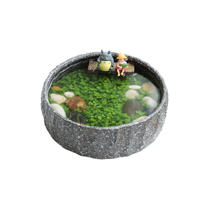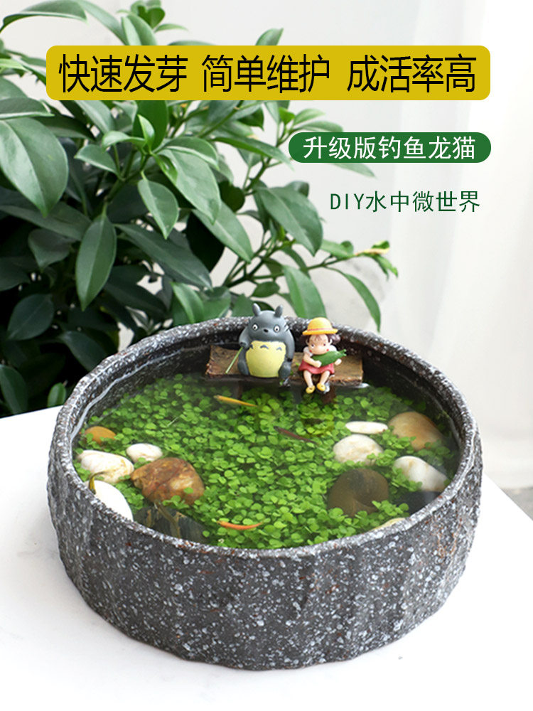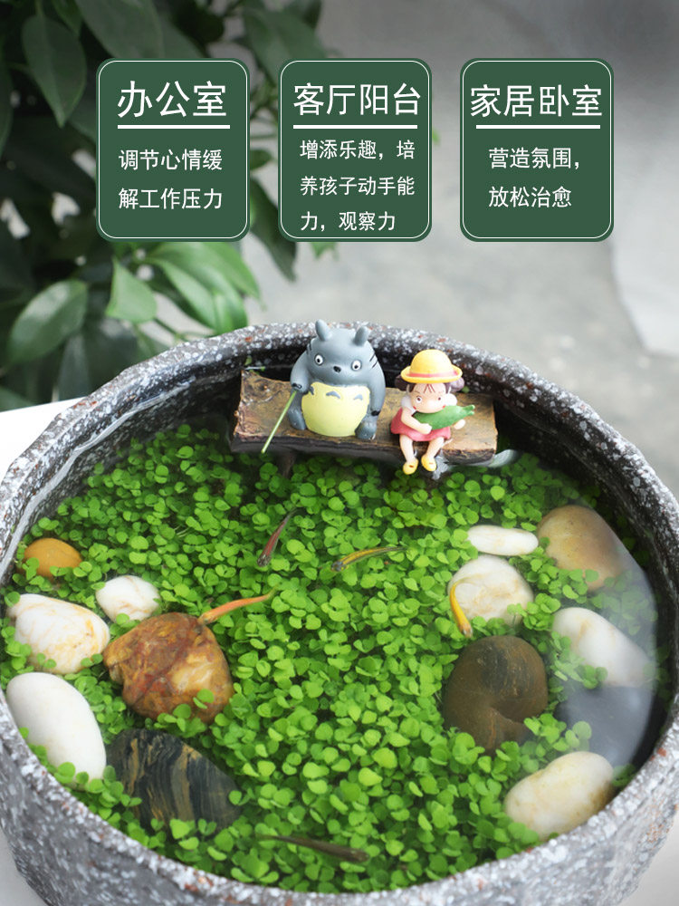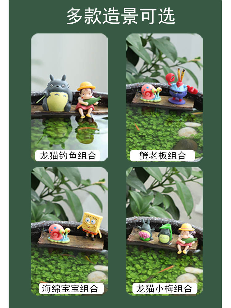 淘宝微景观灰猫垂钓陶瓷古法养鱼缸水培植物种子盆栽创意桌面生态造景