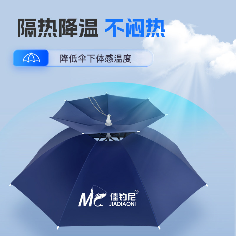 天猫佳钓尼头戴式钓鱼伞帽小雨伞头顶帽子带头上遮阳防晒防雨折叠斗笠
