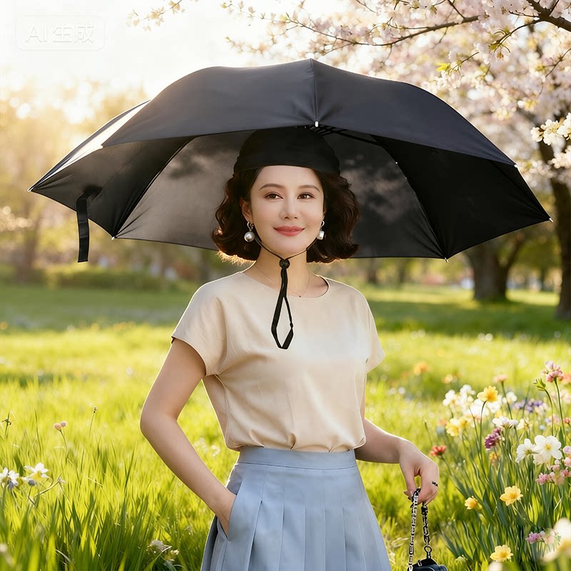 淘雨伞帽双层头戴式头顶带式帽伞遮阳防晒折叠户外大号钓鱼雨伞帽