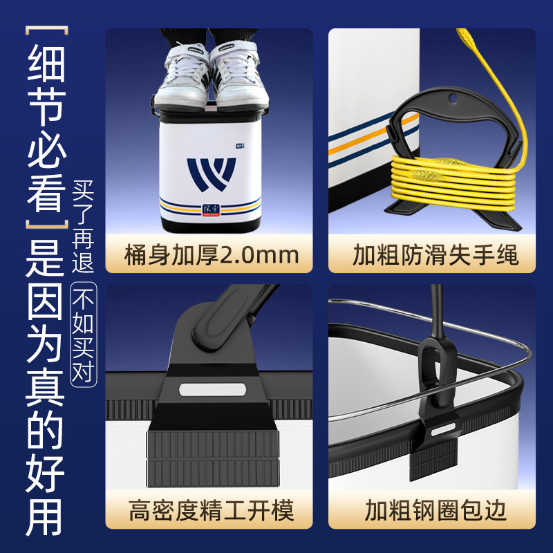 沃鼎探索鱼桶新款加厚钓鱼桶,专为野钓爱好者精心打造。采用高强度加厚环保材料,抗摔耐磨,承重力强,有效防止鱼儿撞破桶壁。桶身设计科学,配备透气孔与排水口,确保活鱼持久鲜活。手提式结构搭配防滑手柄,携带轻便,适合户外长时间垂钓使用。无论是装鱼、打水还是临时养鱼,均能轻松应对。密封性佳,防漏防泼,适应多种复杂环境。沃鼎探索鱼桶集实用、耐用、便携于一体,是钓鱼人不可或缺的户外装备,让每一次垂钓收获满满,畅享自然乐趣。