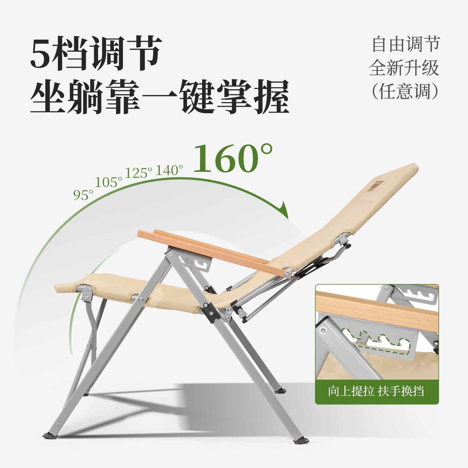 原始人户外折叠椅露营椅子月亮椅钓鱼凳便携式躺椅午休沙滩椅野餐