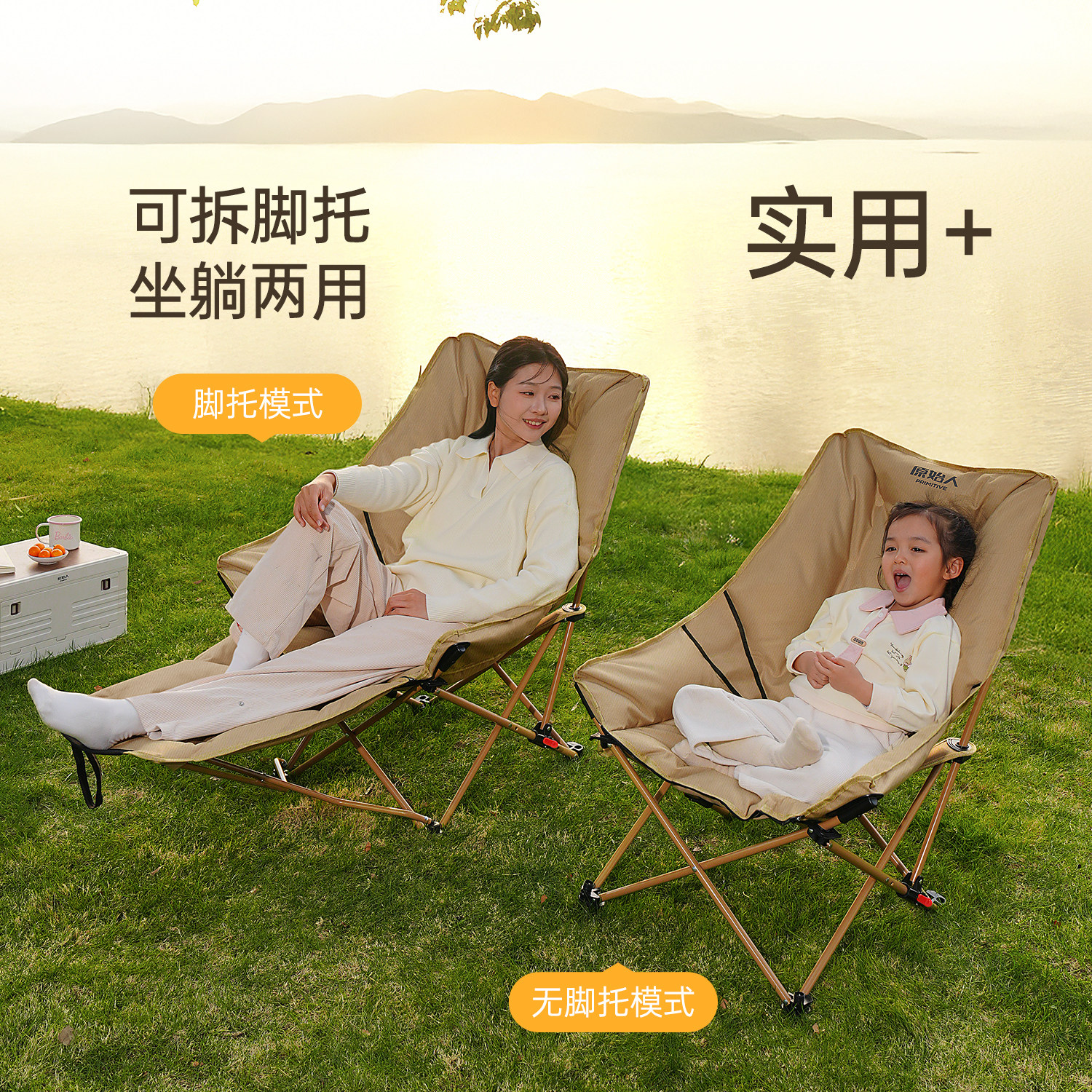 原始人户外折叠椅露营椅子月亮椅钓鱼凳便携式躺椅午休沙滩椅野餐
