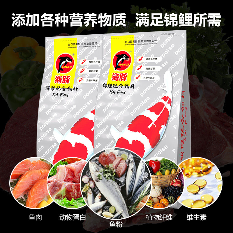 天猫海豚锦鲤鱼饲料焕色增肥健体鱼粮金鱼通用大颗粒高蛋白螺旋藻鱼食