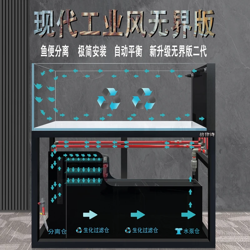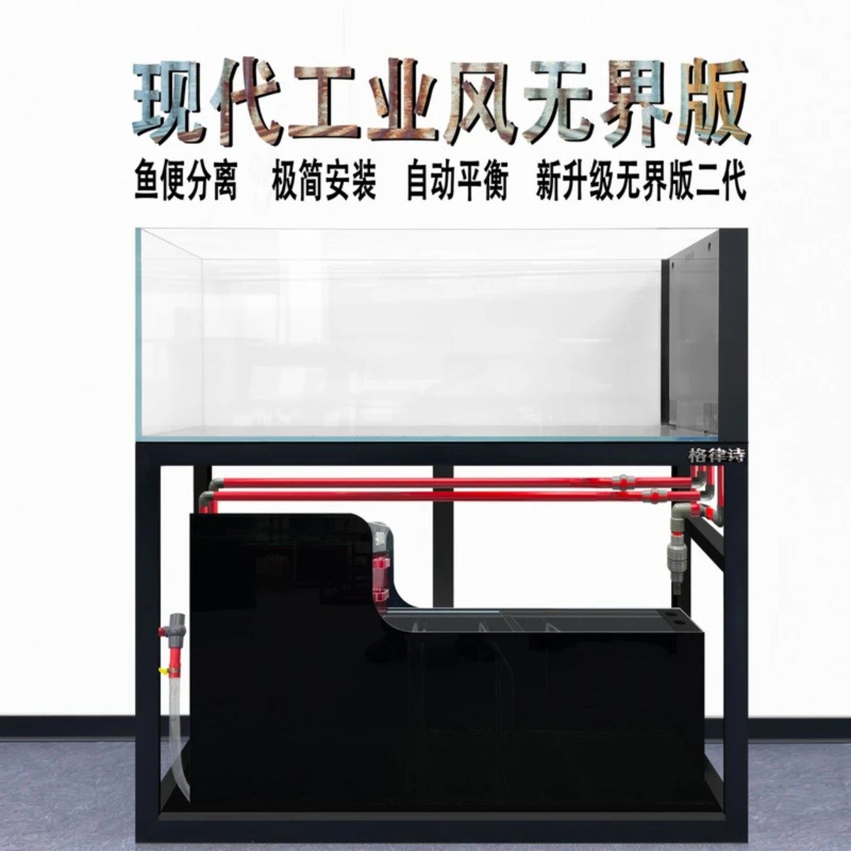 淘宝格律诗新款无界款二代水刀底滤侧溢流工业风溪流缸兰寿缸鱼缸原生