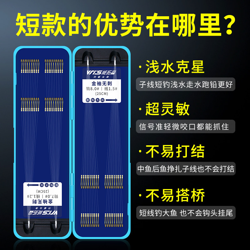 天猫威拓森玩好短子线双钩金袖金海夕钓鱼钩绑好成品鲫鱼白条袖钩正品